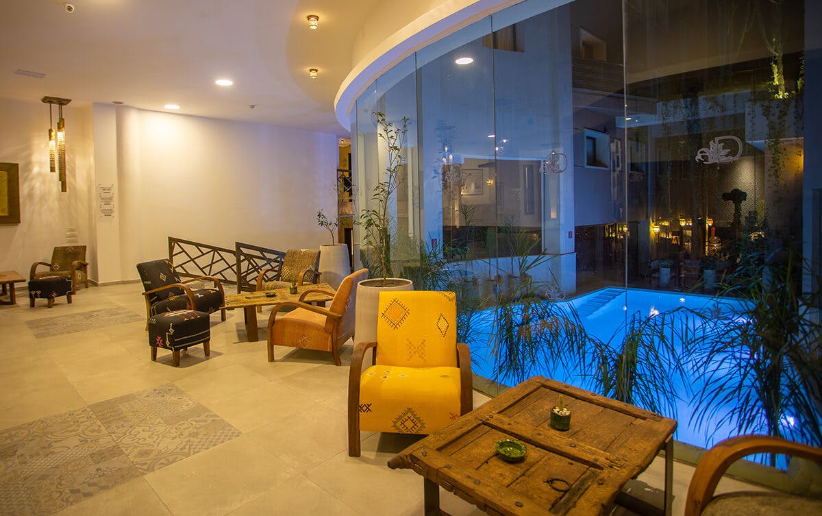 In the heart of the ochre city, in the popular Hivernage district, the Dellarosa Boutique-Hotel and Spa enjoys an exceptional geographical location. Close to all major points of interest including the centre of Guéliz and only a 10-minute walk from the famous Place Jemae El Fna, its souks and its extraordinary medina. Hotel offers an exclusive setting and a 360 ° view of the Atlas Mountains for a charming or business stay in Marrakech.The decoration is contemporary, perfumed with elegance and sobriety, under the influence of Moroccan and oriental craftsmanship, enlivened by two restaurants, a lounge bar, a swimming pool, a spa, a sky, a shop, terraces … Between comfort and conviviality, Moroccan hospitality takes all its meaning and each guest is welcomed in the respect of local traditions.